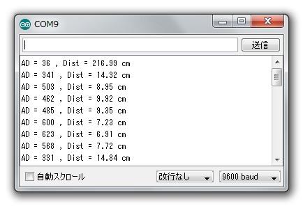 ・SHARPの距離センサ GP2Y0A21YK0F のサンプルプログラムです。