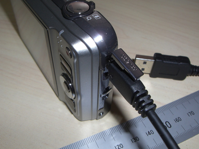 - USBケーブルを接続したところ。カバーは少し開けにくい。開閉を繰り返した時の耐久性が気になるところ。