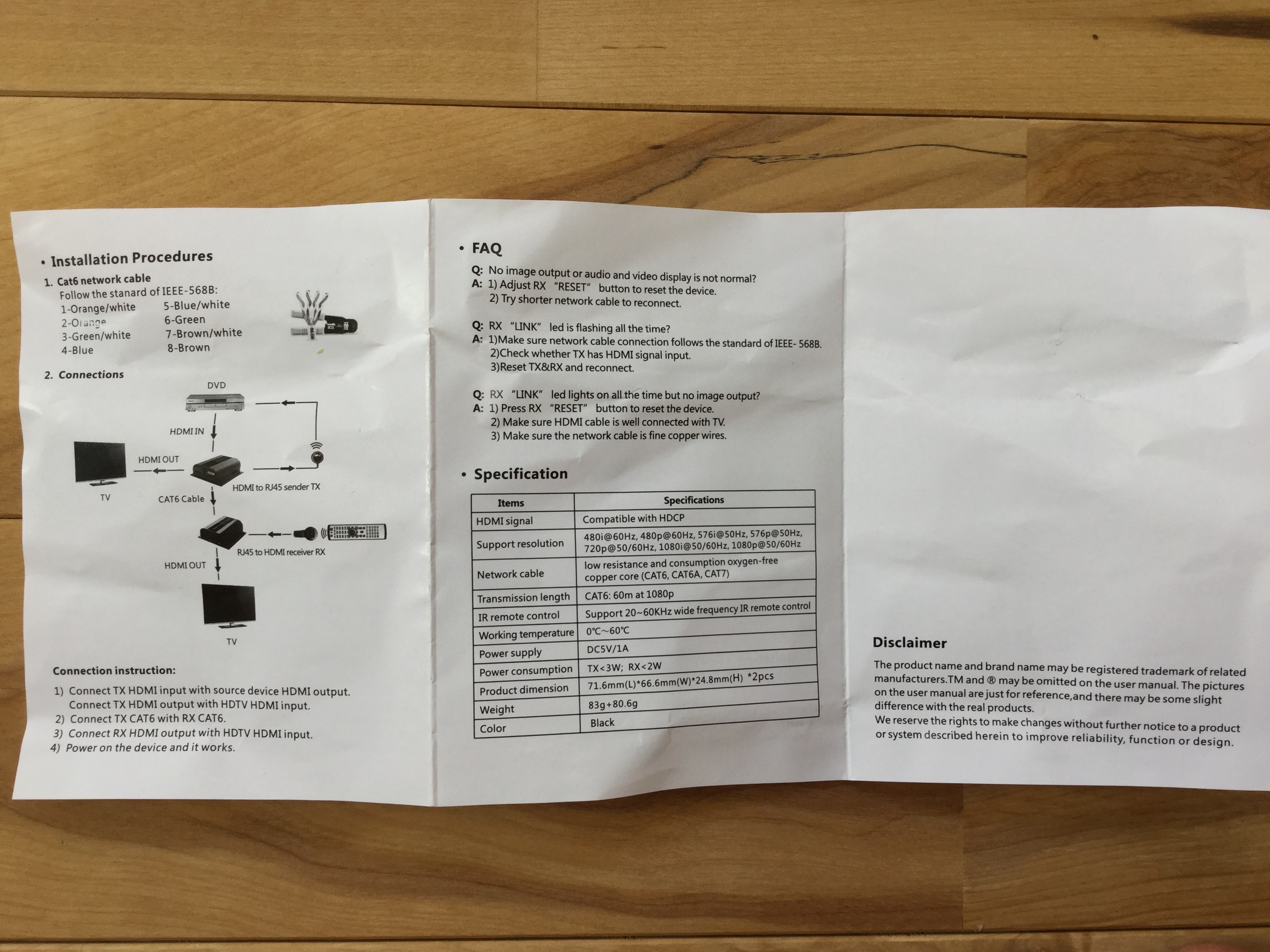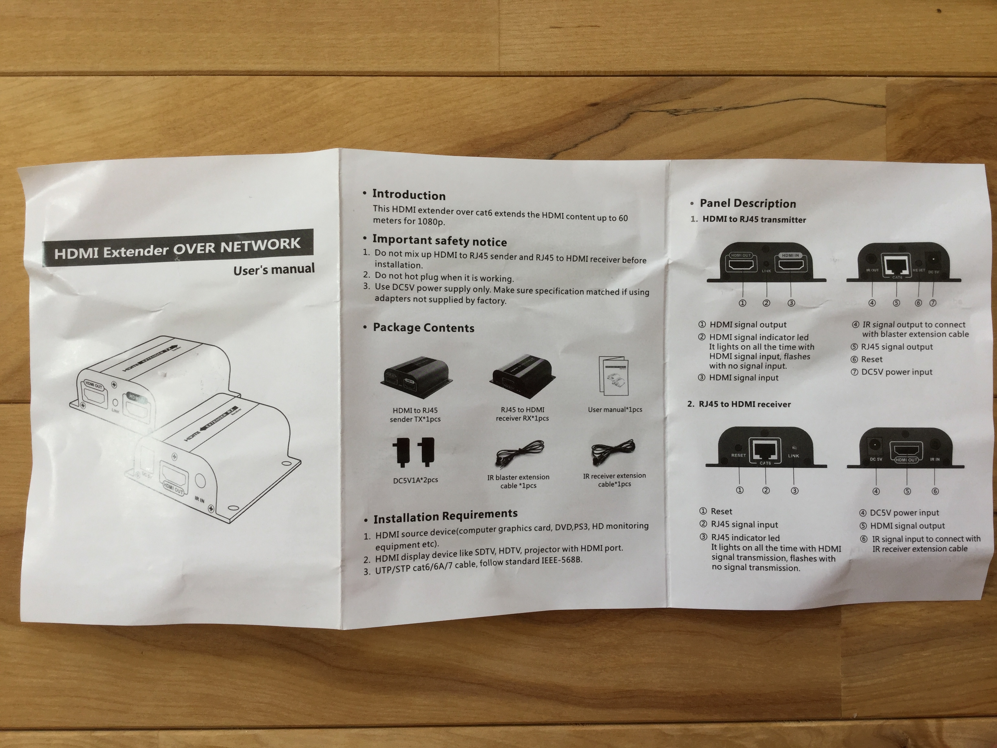 - RJ45 to HDMI 受信機RX x 1
