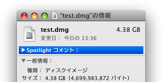 - OSXのディスクユーティリティで4.38Gのディスクイメージを作成し、ファイルのコピー時間を計測する。